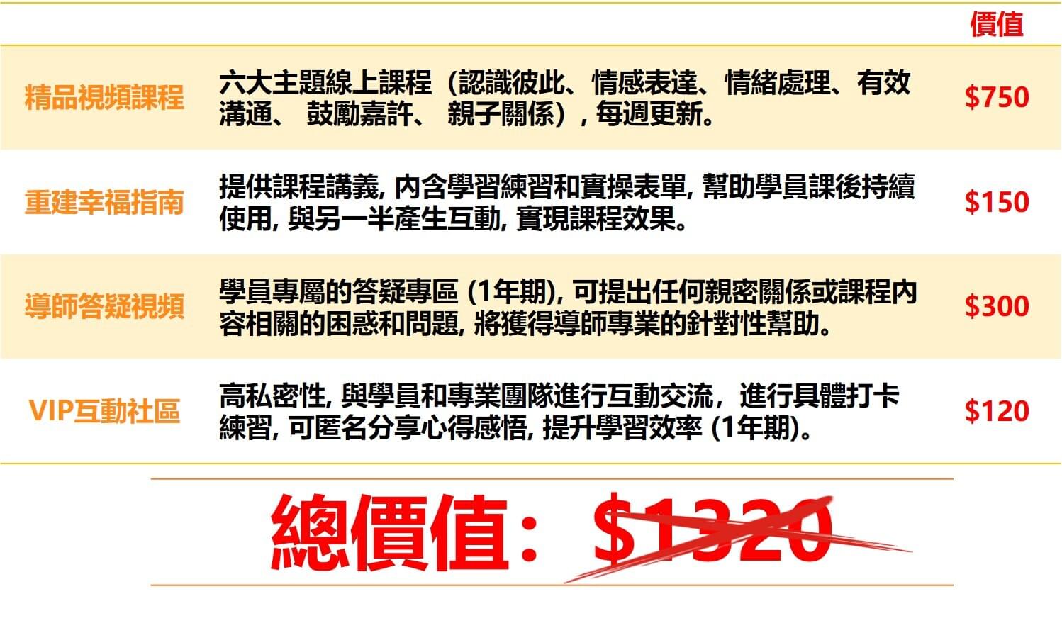 “起初抱著試試看,再努力一把的想法,參加了課程。讓我學到了很多。Eric老師掰開揉碎案例給我們分析,指出我們每件事做的差距,特別是對我的case解析,叫我怎樣傾聽,要改善親密關係不能以受害者的身份,要用同理心去和另一半溝通,並告訴我們比較好的回答是什麼,是我從中提高了對自己的認識。“